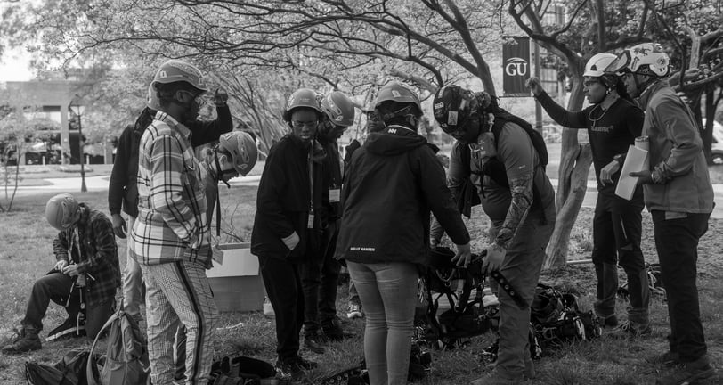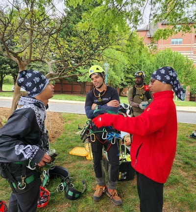 Engaging high school students in hands-on tree care activities.